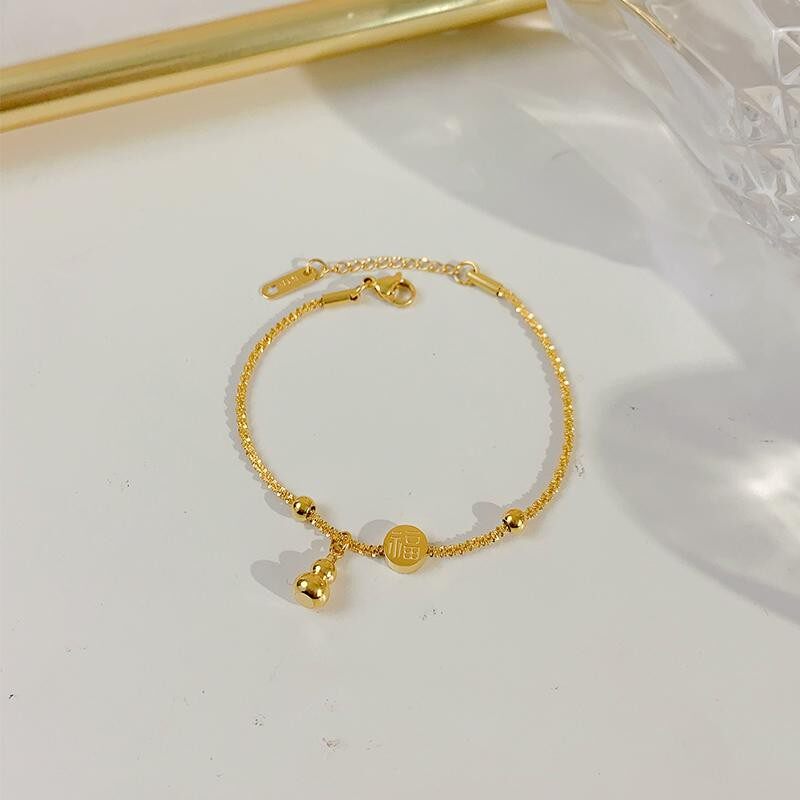 福字葫芦脚链女2025年新款 潮18k金小众精致高级感足链钛钢不掉色