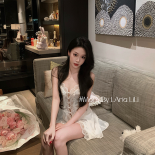 2025新款 性感冰丝睡袍纯欲风高级感蕾丝吊带睡衣 睡裙女春秋夏薄款