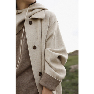 沫晗依美时髦显白连肩袖 保暖毛呢外套女 羊毛双面呢大衣25秋冬新款