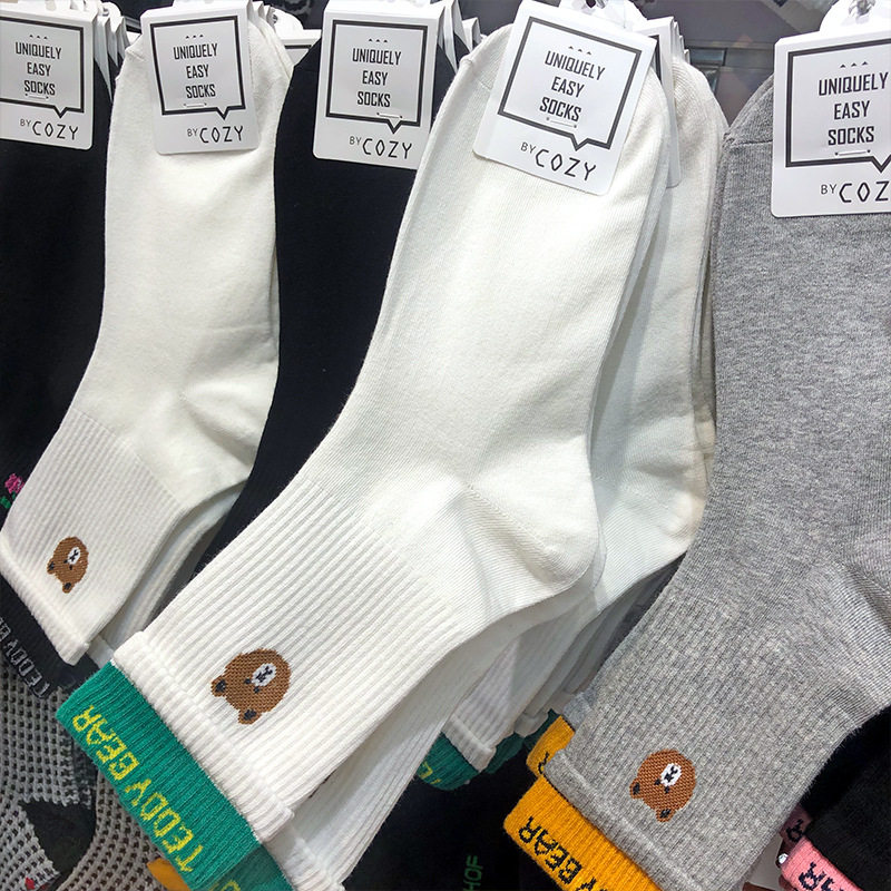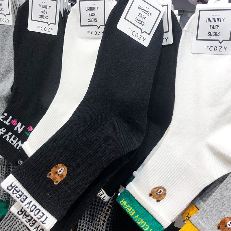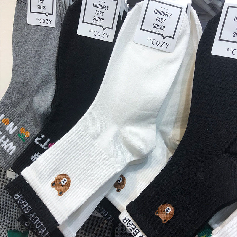 吉良先生 短筒袜纯棉秋冬吸汗防臭男中筒袜潮ins女袜 黑白袜子男士
