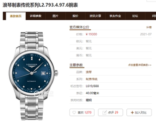 先鉴后发 98新浪琴名匠系列镶钻蓝盘L2.793.4.97.6自动机械男表