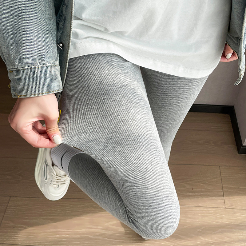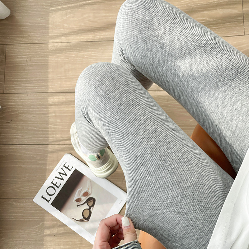 秋季 内穿黑色螺纹秋裤 女外穿2025春秋弹力紧身秋冬棉裤 灰色打底裤