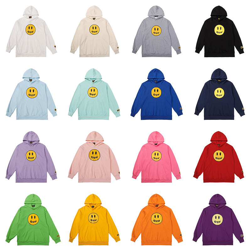 潮牌纯棉外套上衣春秋冬 男女情侣美式 过验版 drew连帽卫衣笑脸帽衫