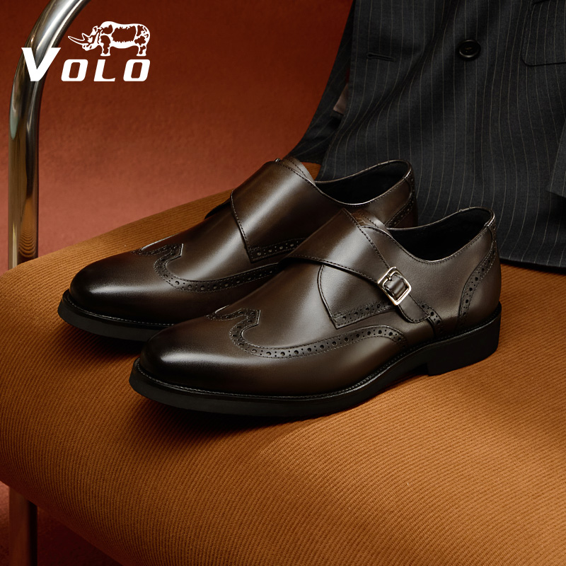 男款 皮鞋 孟克鞋 真皮商务搭扣布洛克西装 VOLO犀牛男士 增高皮鞋 正装