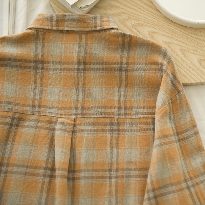 衬衣学生外套减龄 女百搭宽松长袖 云边月 秋全棉复古撞色格子衬衫
