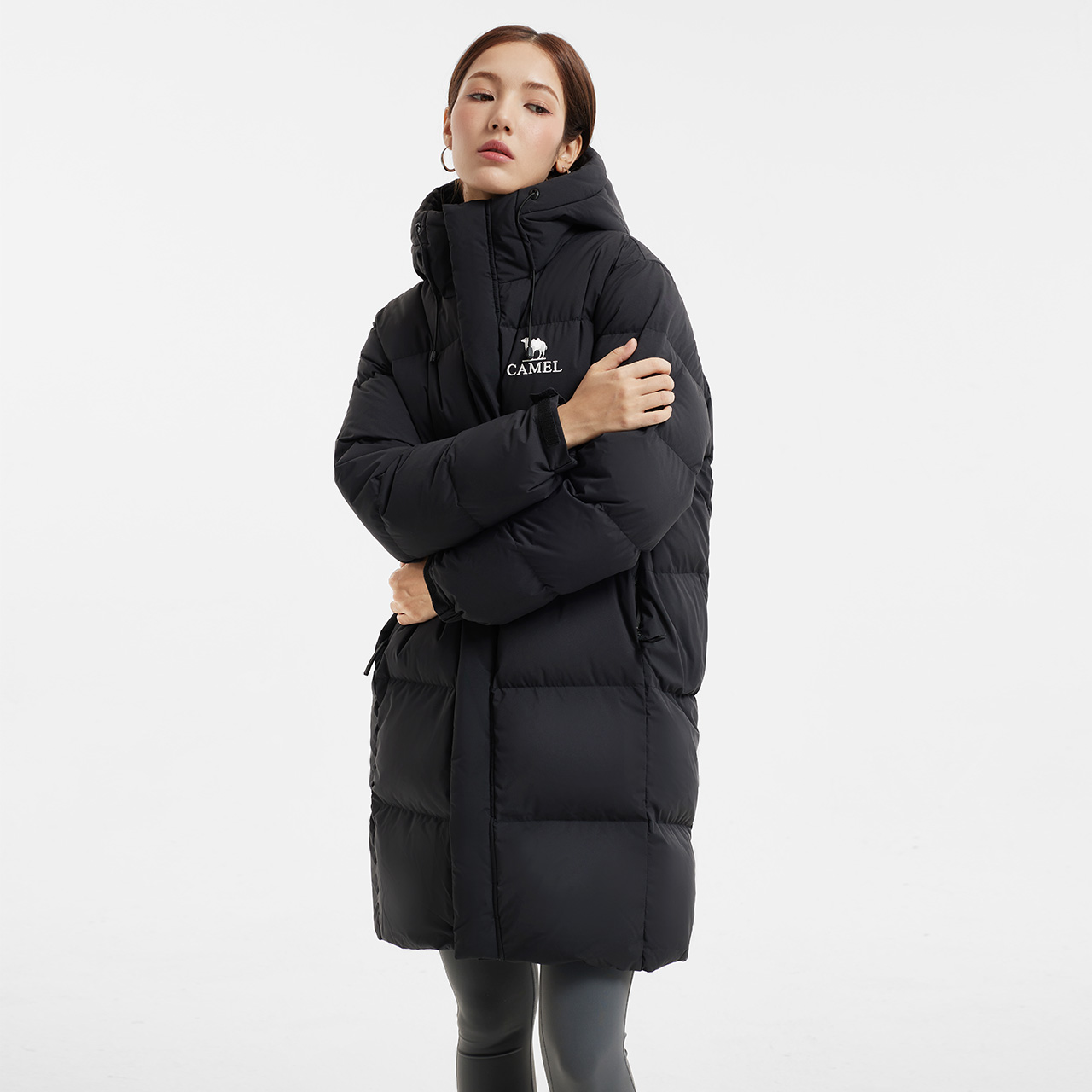 面包服保暖鸭绒加厚连帽羽绒外套 2025冬新款 骆驼女装 羽绒服中长款