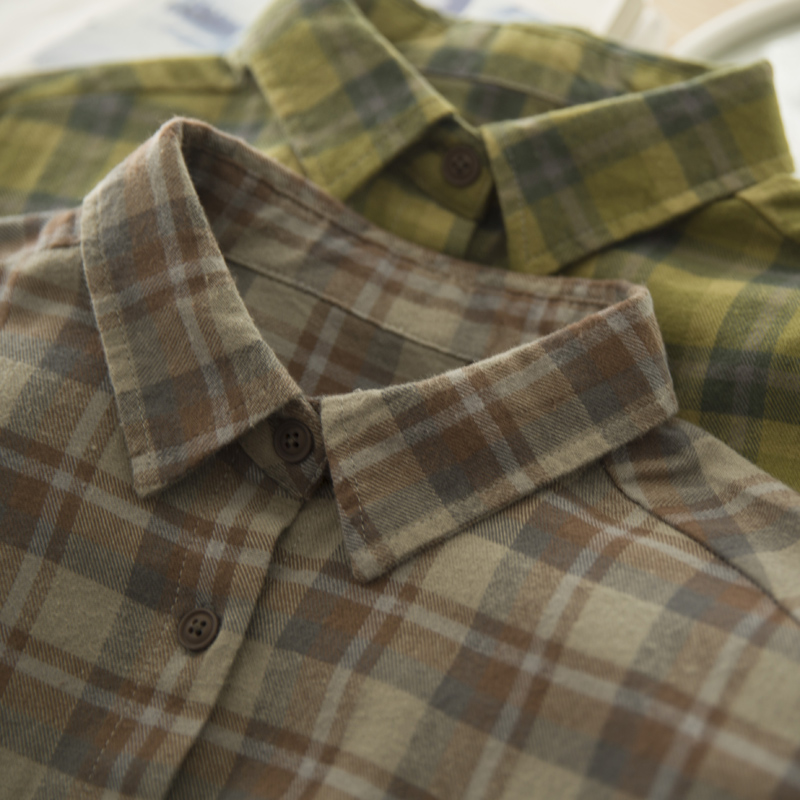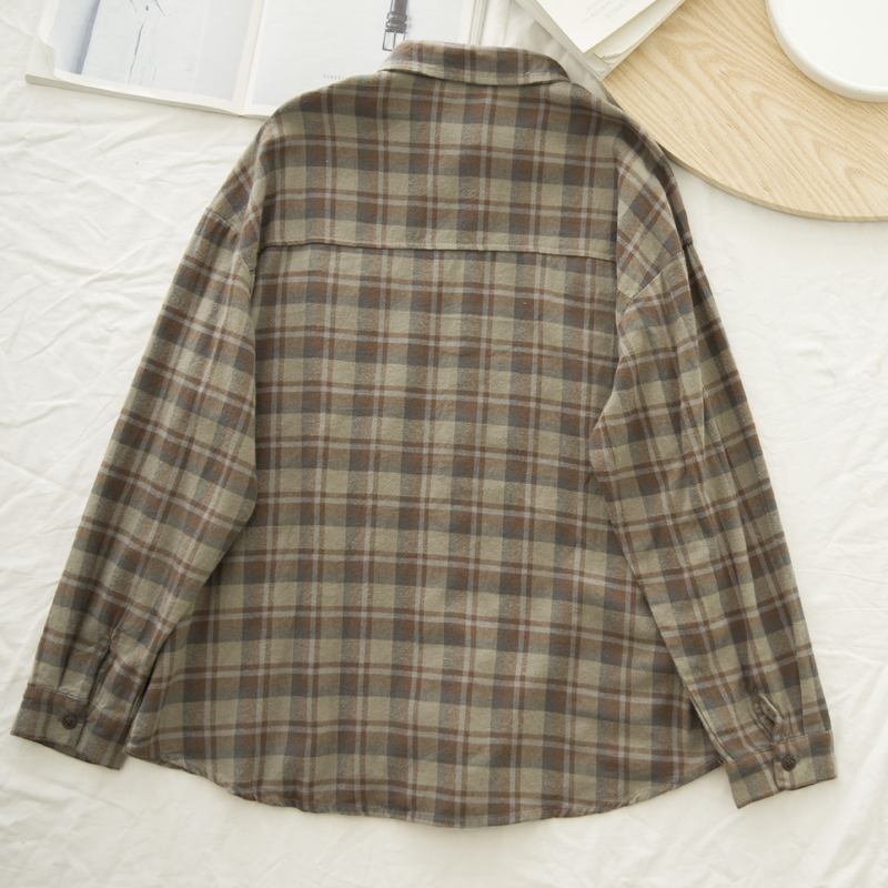 格子衬衫 宽松文艺纯棉长袖 女打底衬衣外套潮学生 秋冬新韩版 微澜