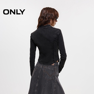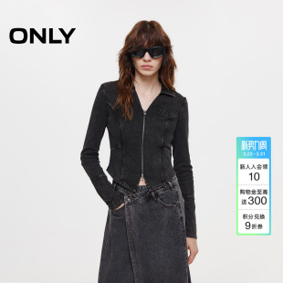 长袖 上衣实用双向拉链V字翻领双C剪裁修身 T恤女 新款 ONLY2026春季