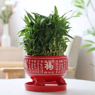 中国风大红花盆陶瓷大号清仓带托盘特大号带福字喜庆创意绿萝花盆