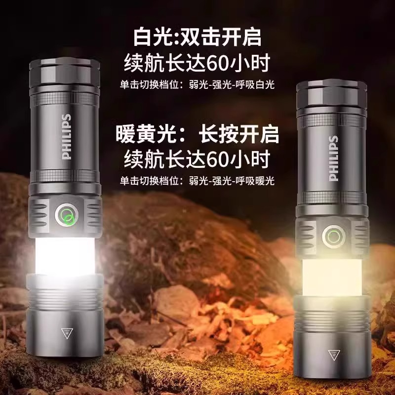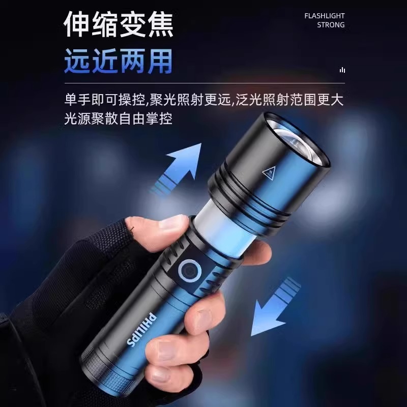 飞利浦5158强光手电筒户外登山远射多功能充电长续航耐用超亮激光