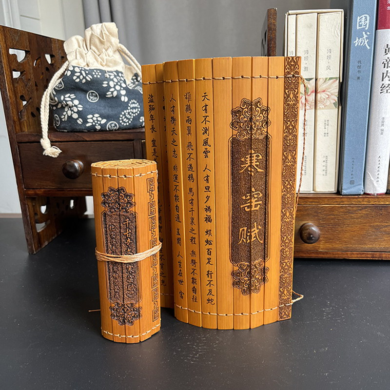 竹简书卷寒窑赋千古奇闻装 饰书房摆件仿古竹书国学中国风创意礼品