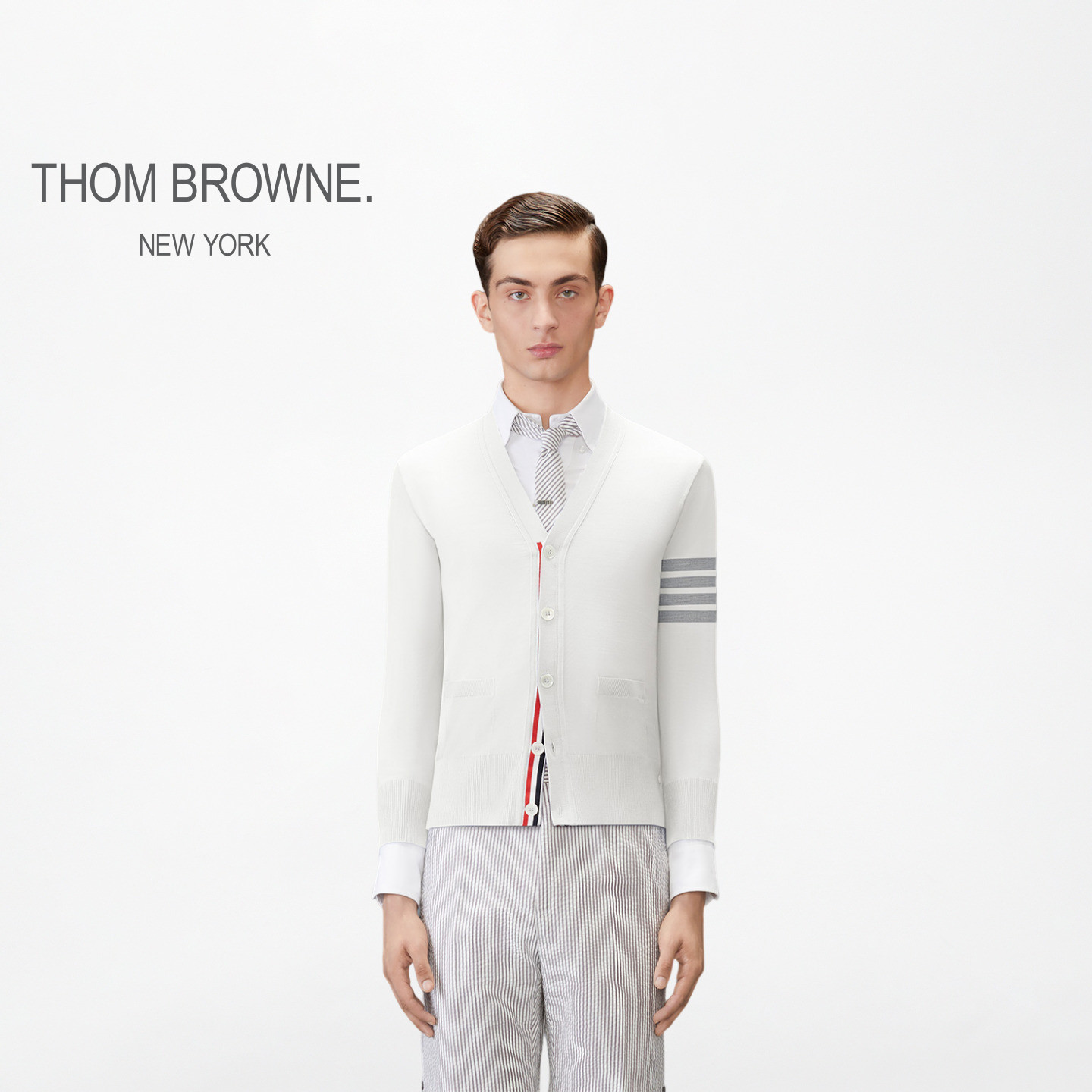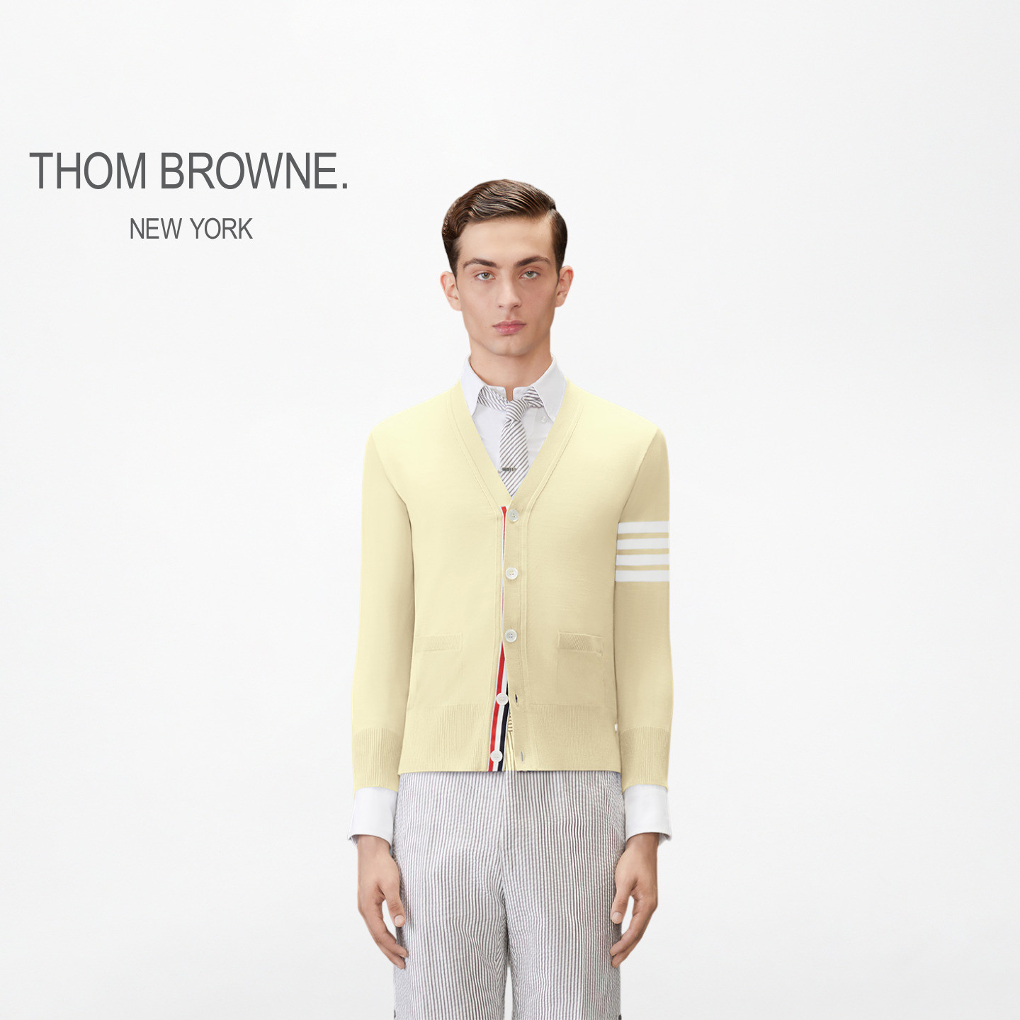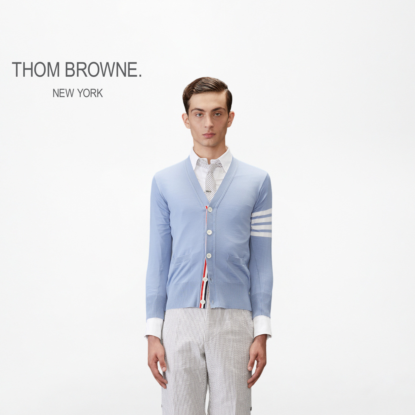 6期免息 经典 典彩系列THOM 男士 轻薄四条纹针织羊毛开衫 BROWNE