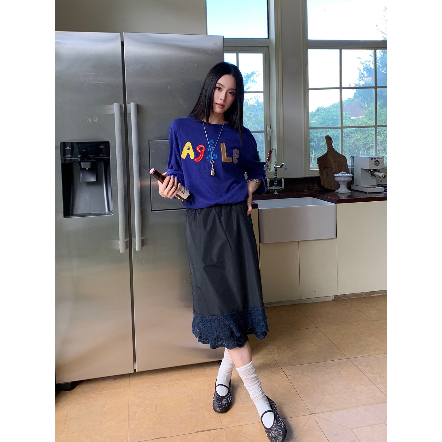 字母贴布绣长袖 SHORT 25早秋新品 设计师品牌 T恤SOLSOL SENTENCE