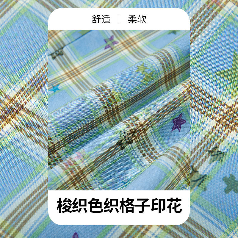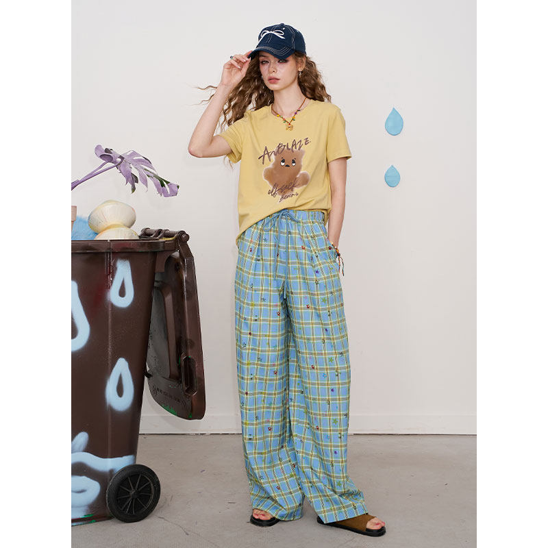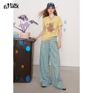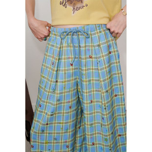 宽松休闲直筒裤 女2026年春秋新款 子 口袋撞色格子星星阔腿裤 妖精