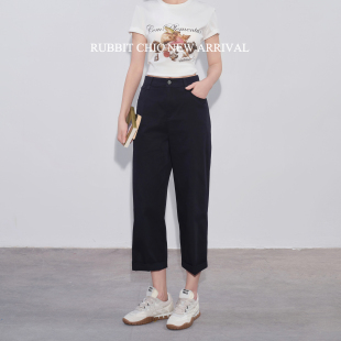 老爹裤 RUBBIT夏季 简约小直筒高腰显瘦薄款 休闲随性九分裤 女 新品
