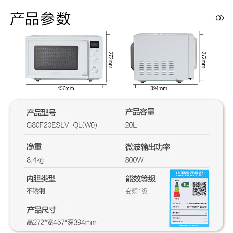 政府补贴格兰仕微波炉家用20L平板旋钮小型机械耐用多功能一体