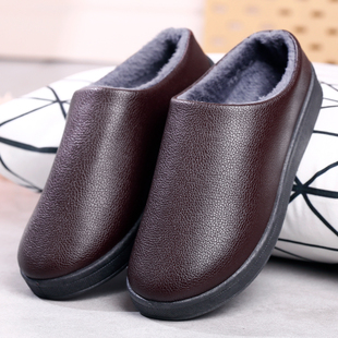 外穿厚底防滑毛绒保暖情侣室内居家包头拖鞋 冬季 女 男士 简约棉拖鞋
