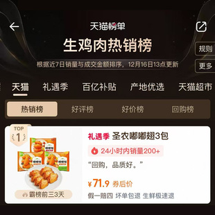 3包烤鸡翅中冷冻半成品 圣农大号奥尔良嘟嘟翅280g 直播专享