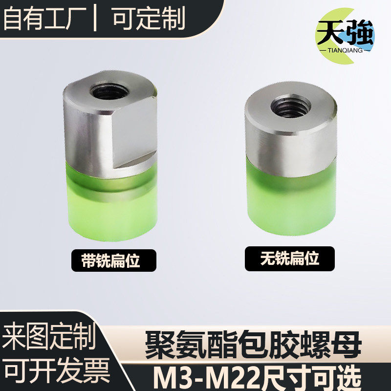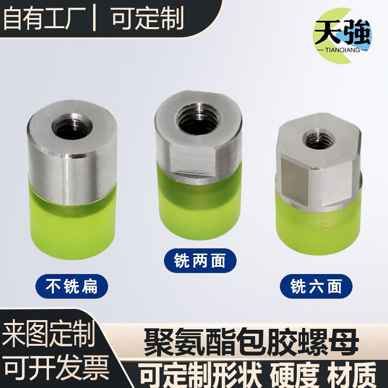 聚氨酯新款 M5M6M8M10不锈钢内螺纹包胶螺母防撞减震压块缓冲胶头