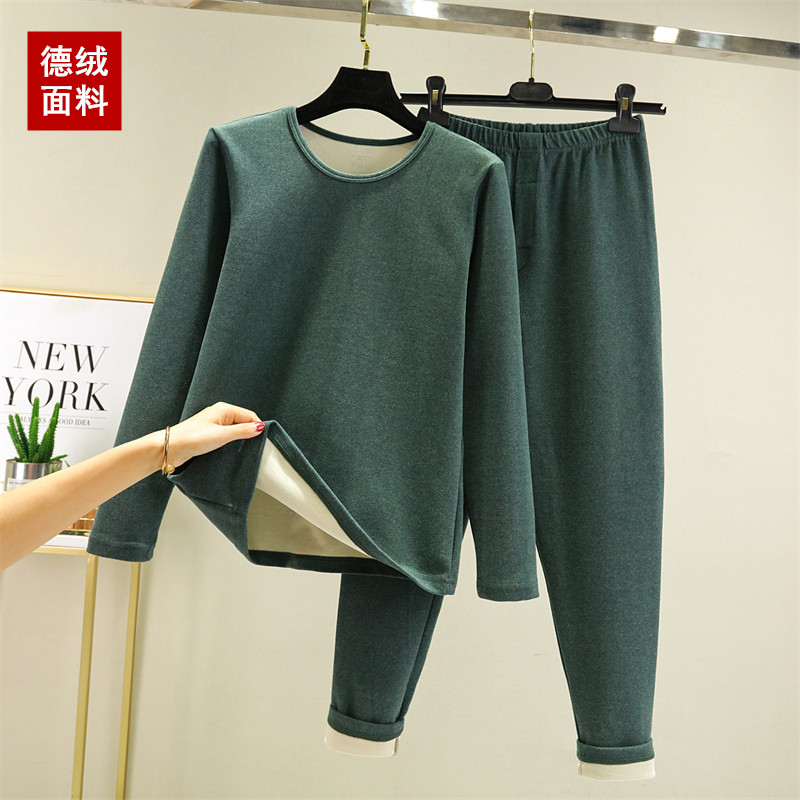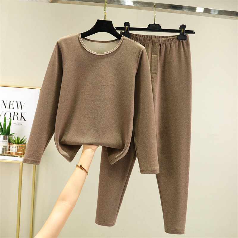 女款 秋衣秋裤 保暖衣冬季 婴儿棉保暖内衣莱卡棉毛衫 低领 女士套装