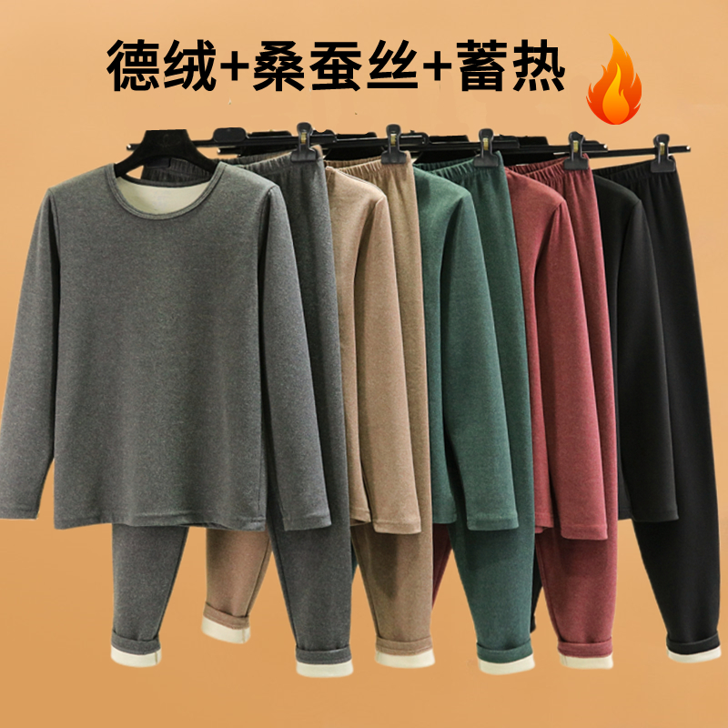 加绒加厚纯棉套装 保暖内衣男女款 有棵树秋衣秋裤 冬季 成毅同款