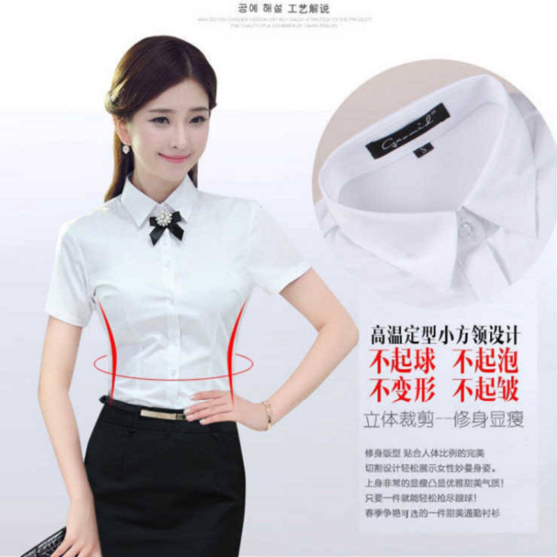 职业气质长袖 小个子白色衬衫 收腰显瘦正装 薄款 衬衣工作服 女夏短袖