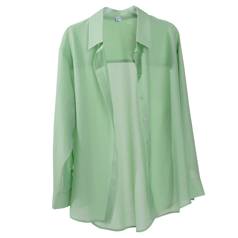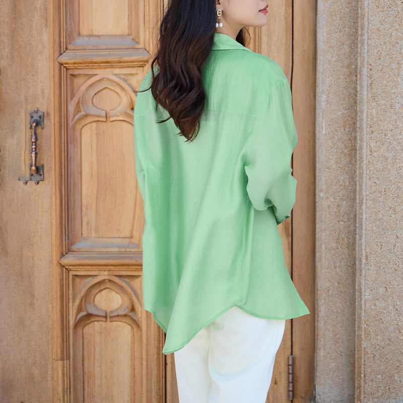 绿色高级感大码 女轻薄夏凉感宽松外搭衬衣外套 防晒莱赛尔天丝衬衫