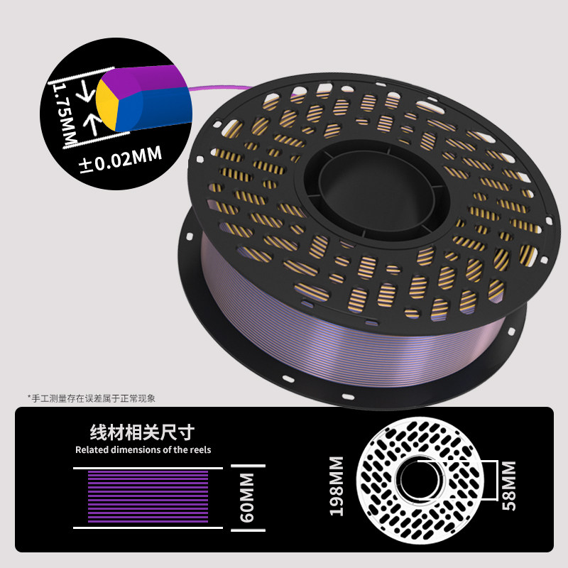 彩多屋PLA丝绸双色三色四色多色彩虹渐变适配拓竹H2D P2S创想通用