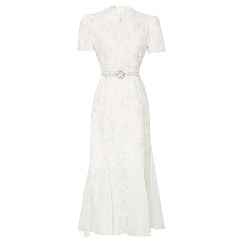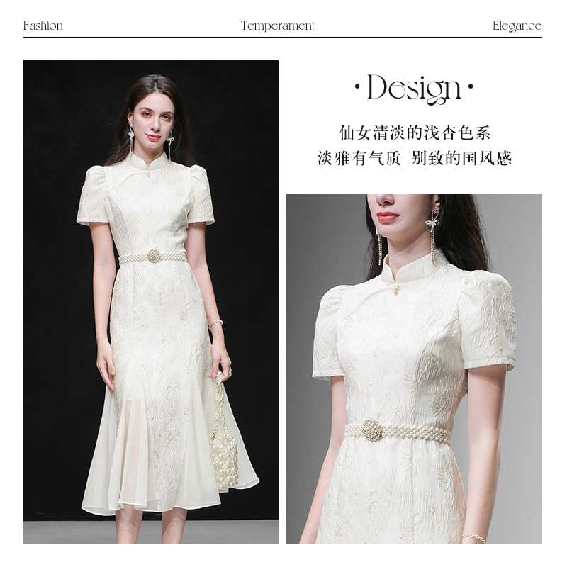 收腰显瘦鱼尾摆长款 2025夏季 提花泡泡袖 新中式 连衣裙 新款