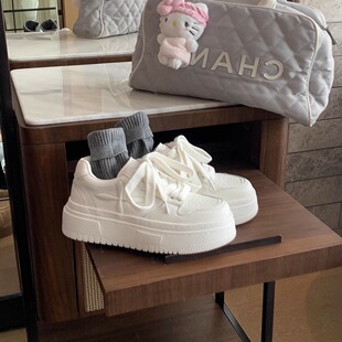 女百搭小白鞋 真皮厚底内增高松糕休闲板鞋 2026年秋冬新款 牛皮版