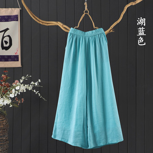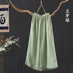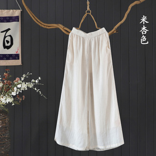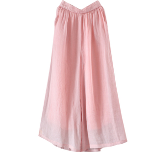 裙裤 清爽飘逸纯色100支细苎麻长裤 宽松文艺凉爽阔腿裤 新品 女 夏季