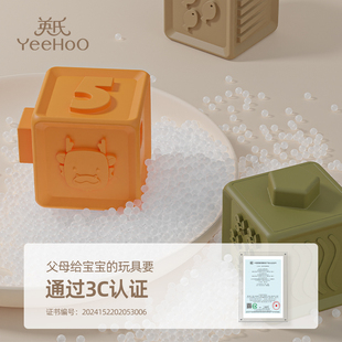 英氏浮雕软胶软积木婴儿可啃咬叠叠乐宝宝抓握6个月以上益智玩具