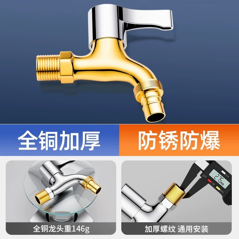 水龙头全铜洗衣机家用专用加长普通四分单冷拖把池龙头螺纹阳台