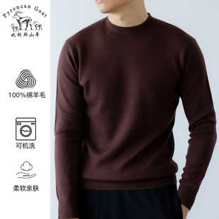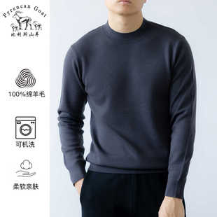 毛衣 半高领软糯宽松套头针织打底衫 双股加厚100%纯羊毛衫 男秋冬季