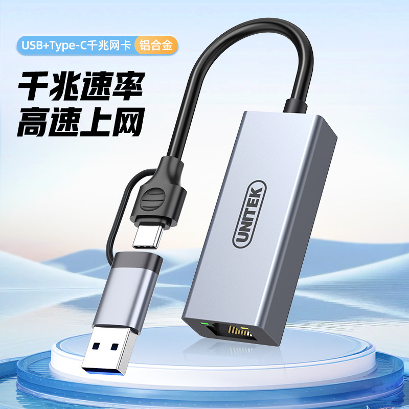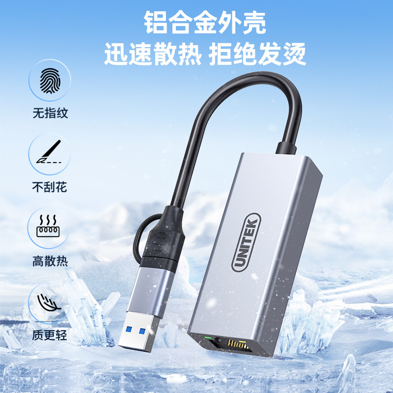 优越者usb网卡千兆网口扩展坞手机平板外接RJ45转换器网线转接头适用苹果Mac华为小米笔记本电脑外置网卡