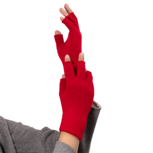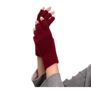 自发热德绒半指手套女秋冬季 保暖防寒学生写字办公打字漏指手套
