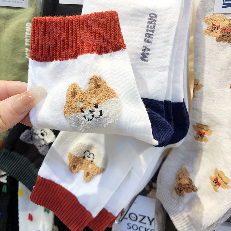 吉良先生 短筒袜纯棉秋冬吸汗防臭男中筒袜潮ins女袜 黑白袜子男士