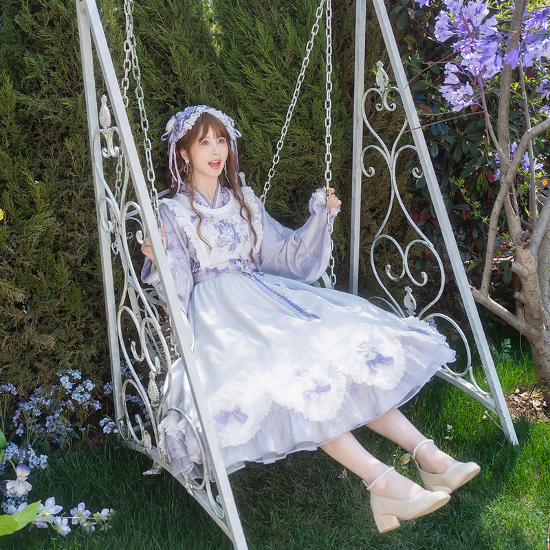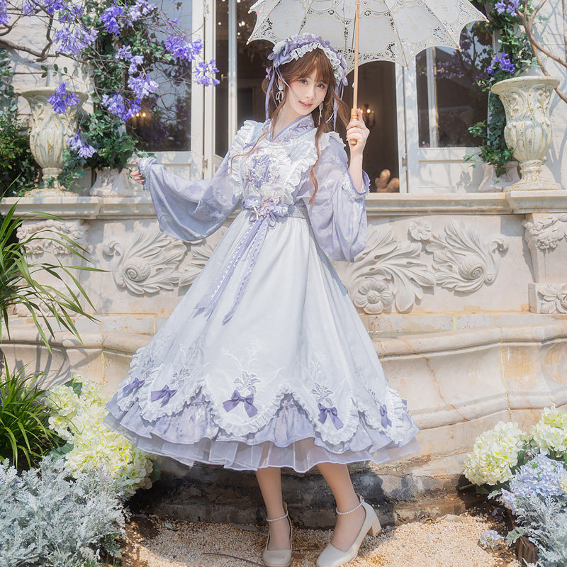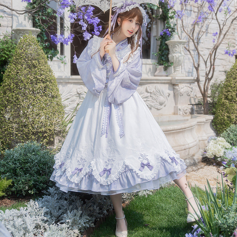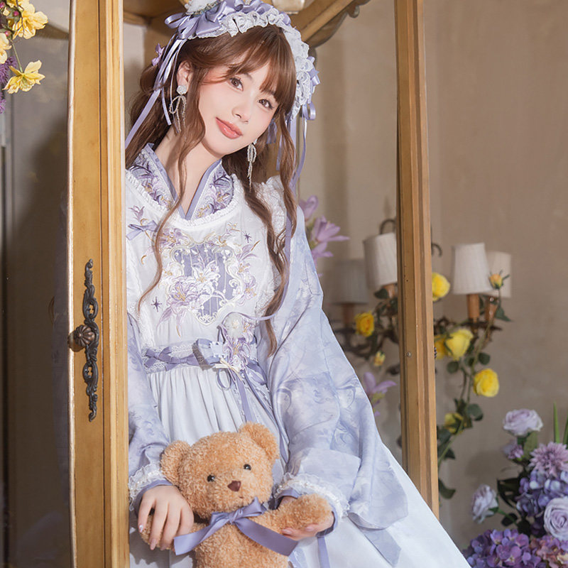 素女套装 原创紫色交领连衣裙仙气罩裙汉元 春夏 琴音百合 云藏月绣