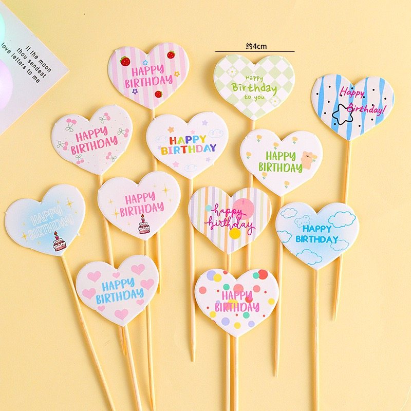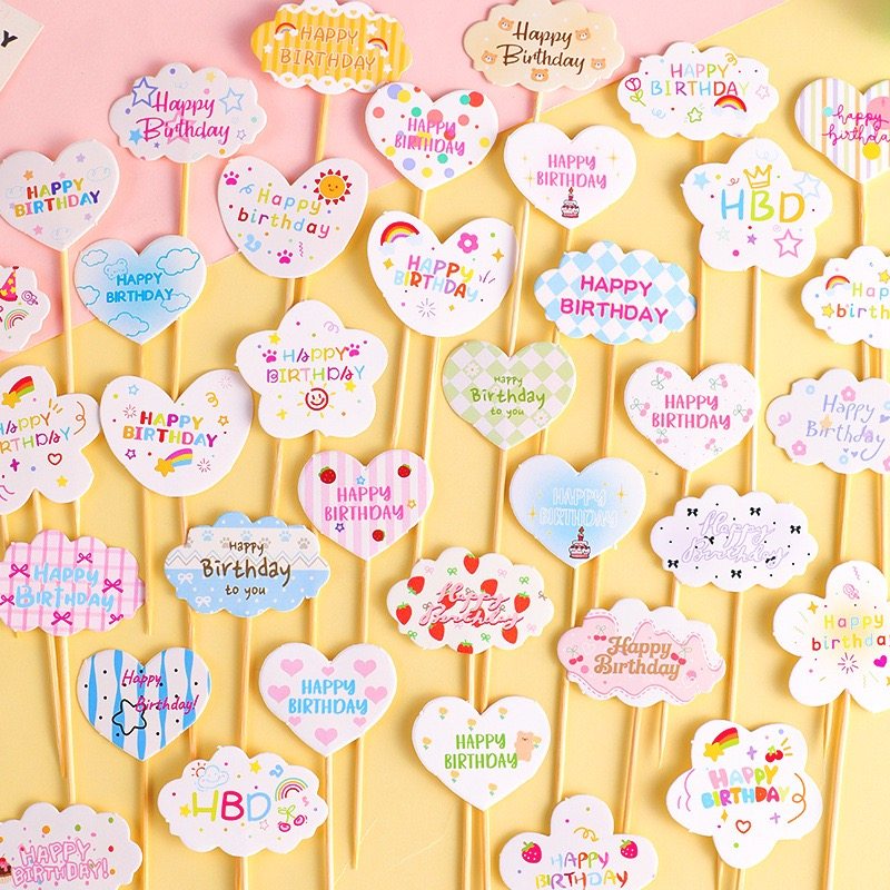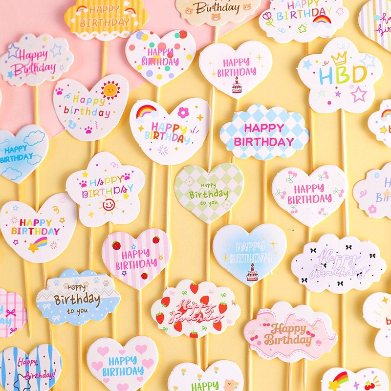 生日快乐插牌儿童生日蛋糕装 饰卡通插卡爱心云朵插件纸杯烘焙插件