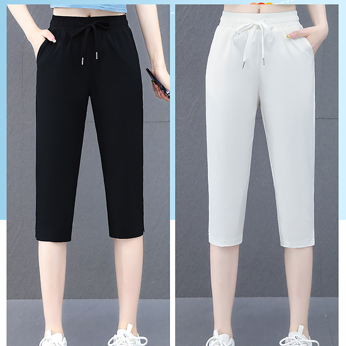 小个子显瘦速干裤 夏季 夏天薄款 女裤 子 七分裤 白色冰丝裤 女2026新款