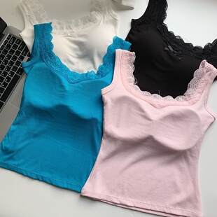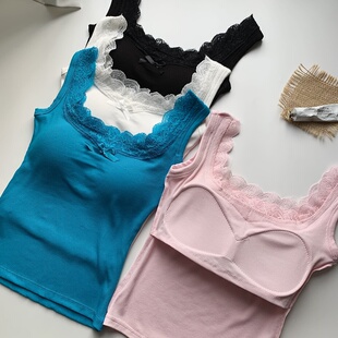 外穿内搭打底无袖 修身 上衣 新款 方领蕾丝吊带背心女2025春夏季