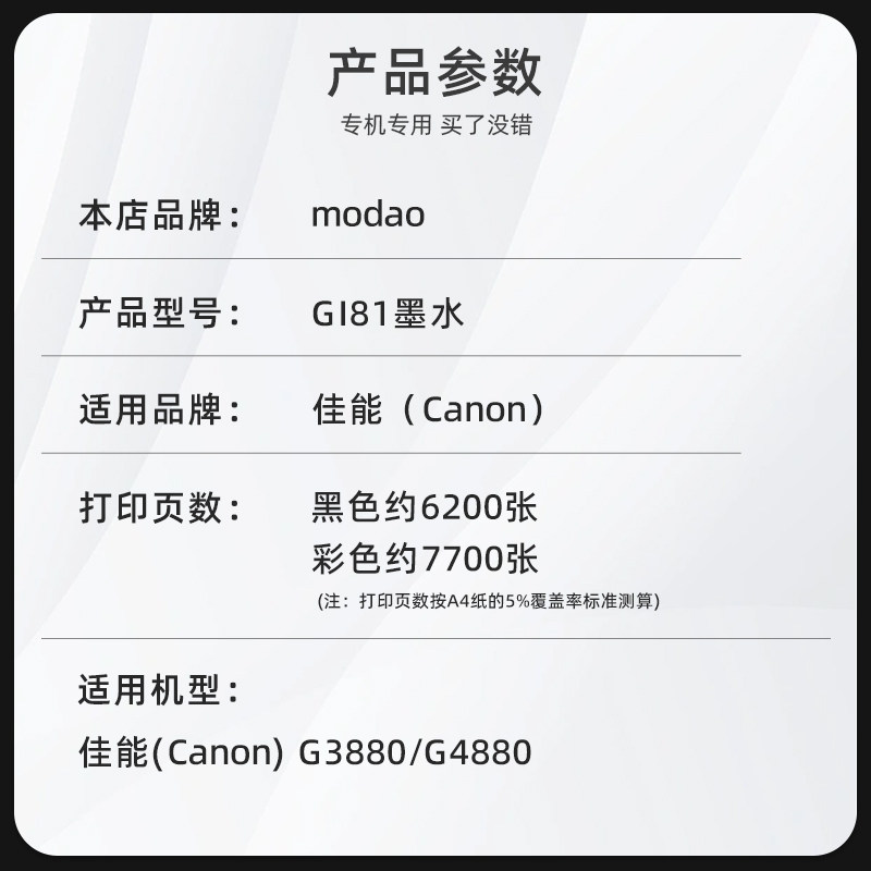 M彩色 打印机墨水G4880黑色BK 适用佳能G3880墨水canon原装