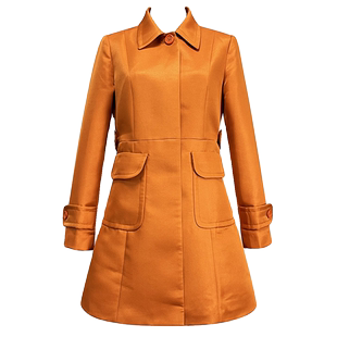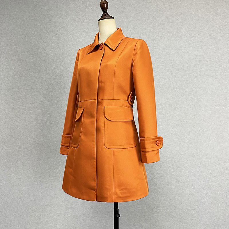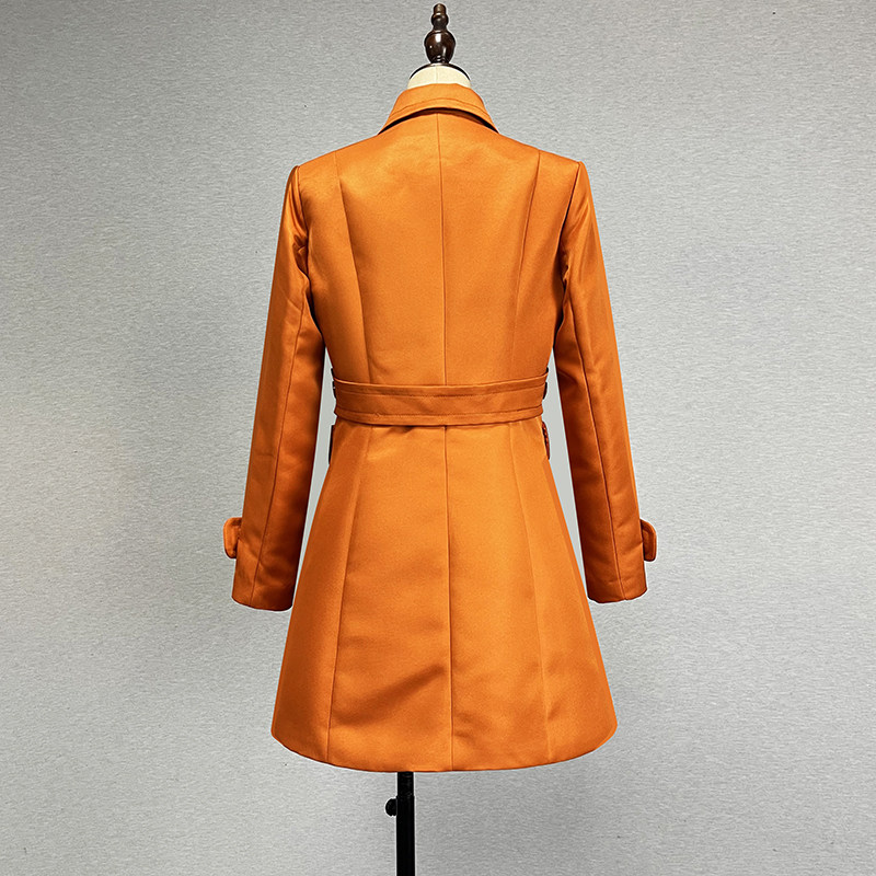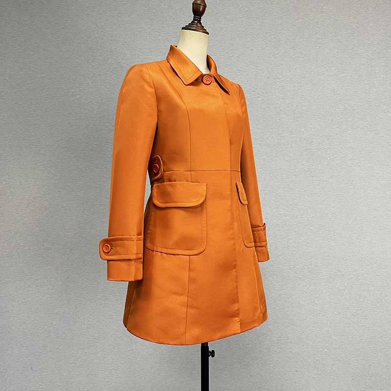 品牌折扣中长款 桔红色风衣女2024欧美风春秋POLO领单排扣气质外套