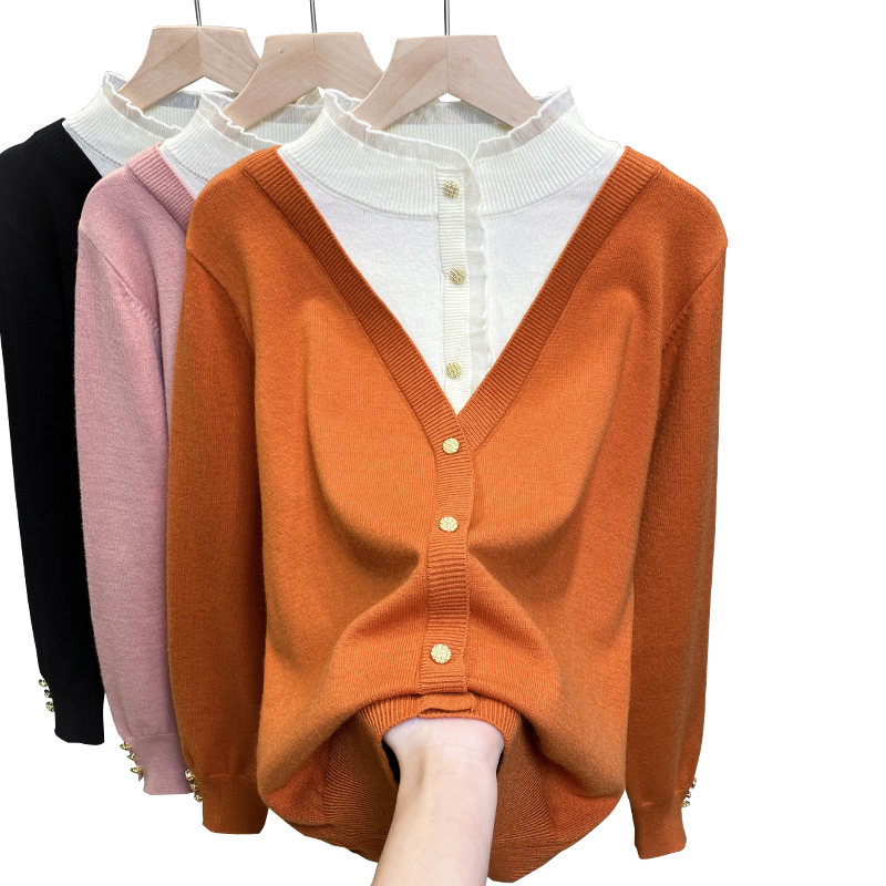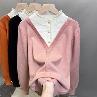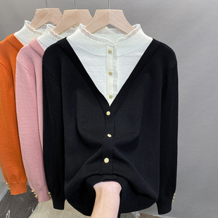 内搭洋气上衣潮 蕾丝针织衫 半高领毛衣女假两件打底衫 2025秋冬新款