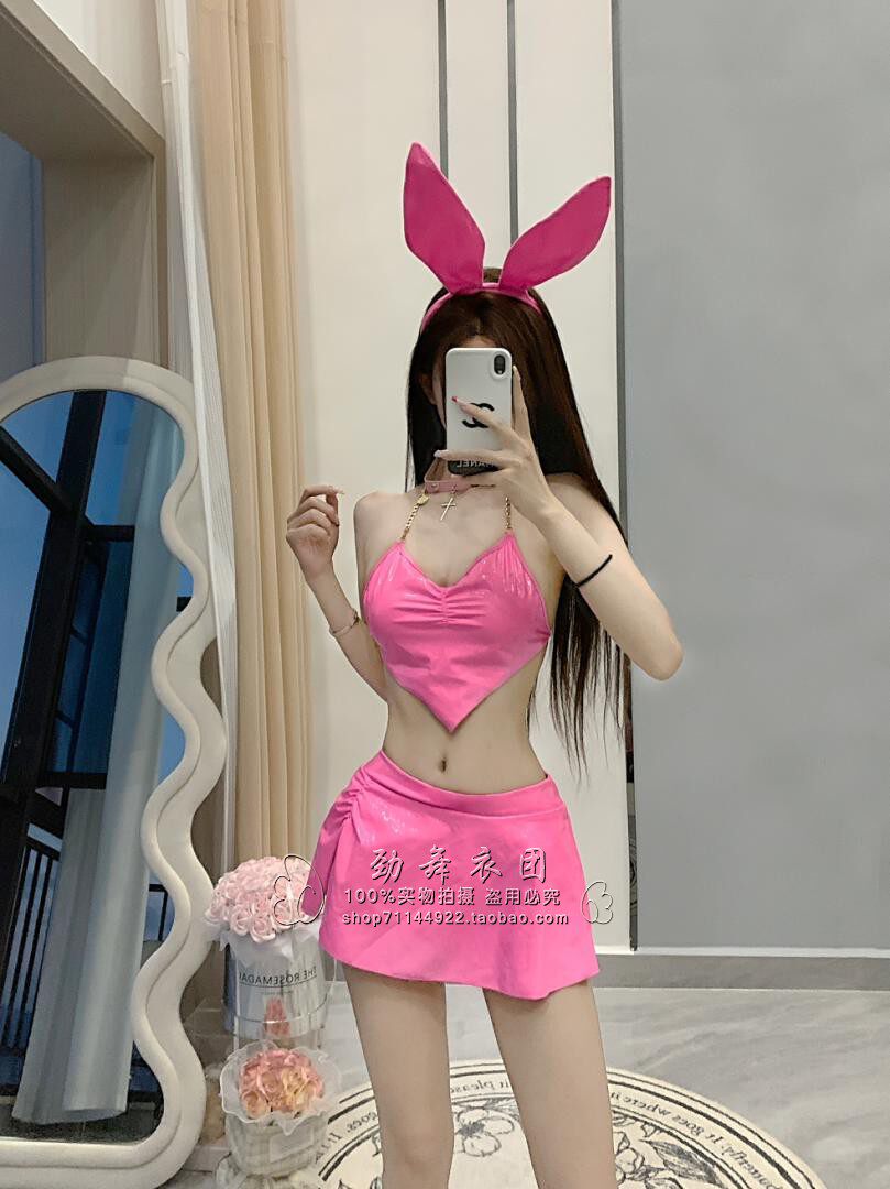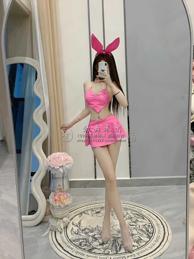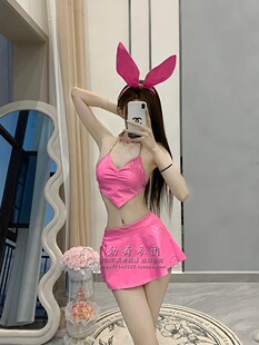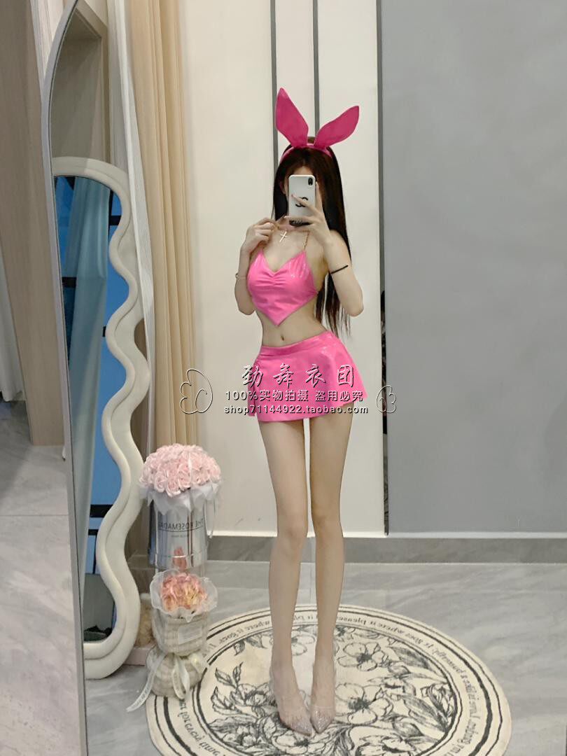 新款 ds酒吧粉色GOGO兔女郎角色扮演气氛颗粒炸场皮衣短裙演出服女