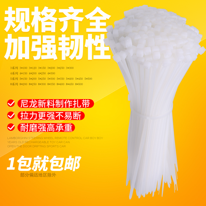 添翼自锁式 尼龙扎带塑料扎线带国标白色大号强力卡扣束线捆绑扎丝