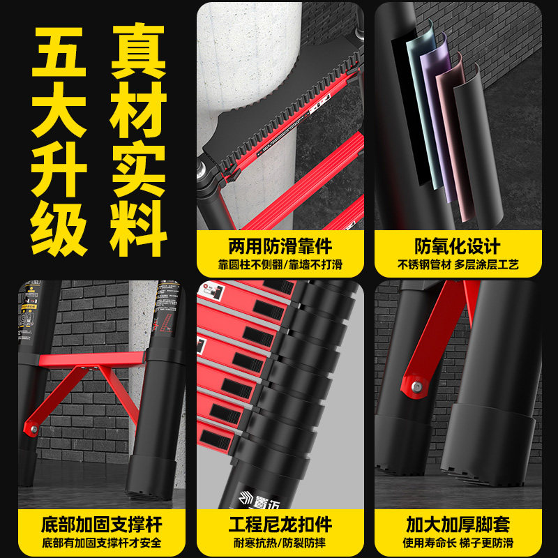 伸缩梯子升降工程梯便携家用多功能直梯带钩折叠加厚带钩人字梯