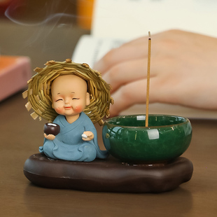 禅意小和尚香插香炉线香底座家用檀香盘托沉香香托香座陶瓷小摆件