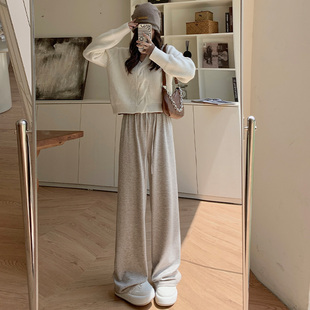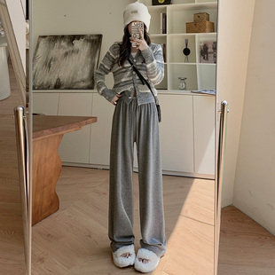 阔腿裤 高腰垂感直筒慵懒休闲窄版 冬 女春秋2025新款 韩国灰色糯米裤