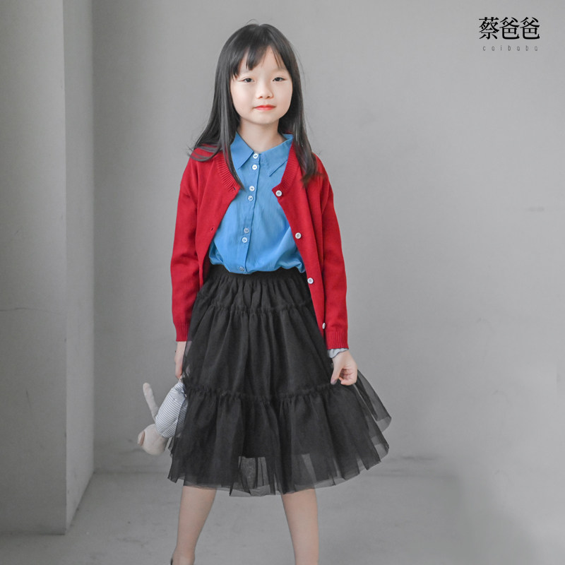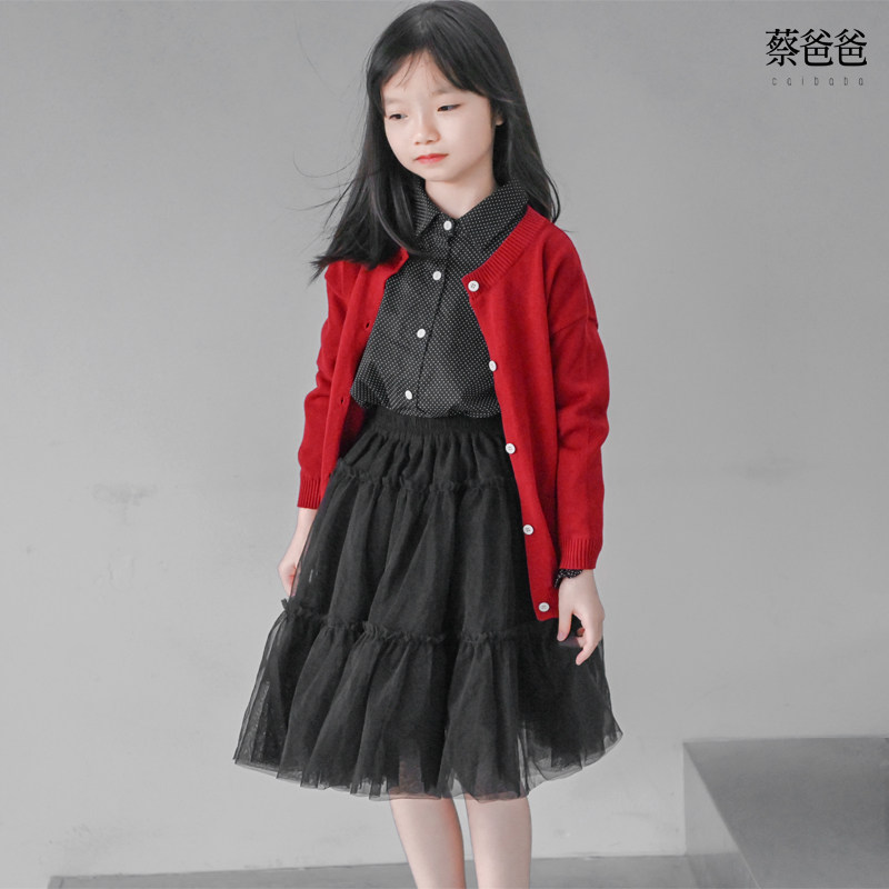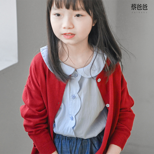 针织开衫 女童外套小个子女装 1295 文艺红色毛衣2025秋装 蔡爸爸童装